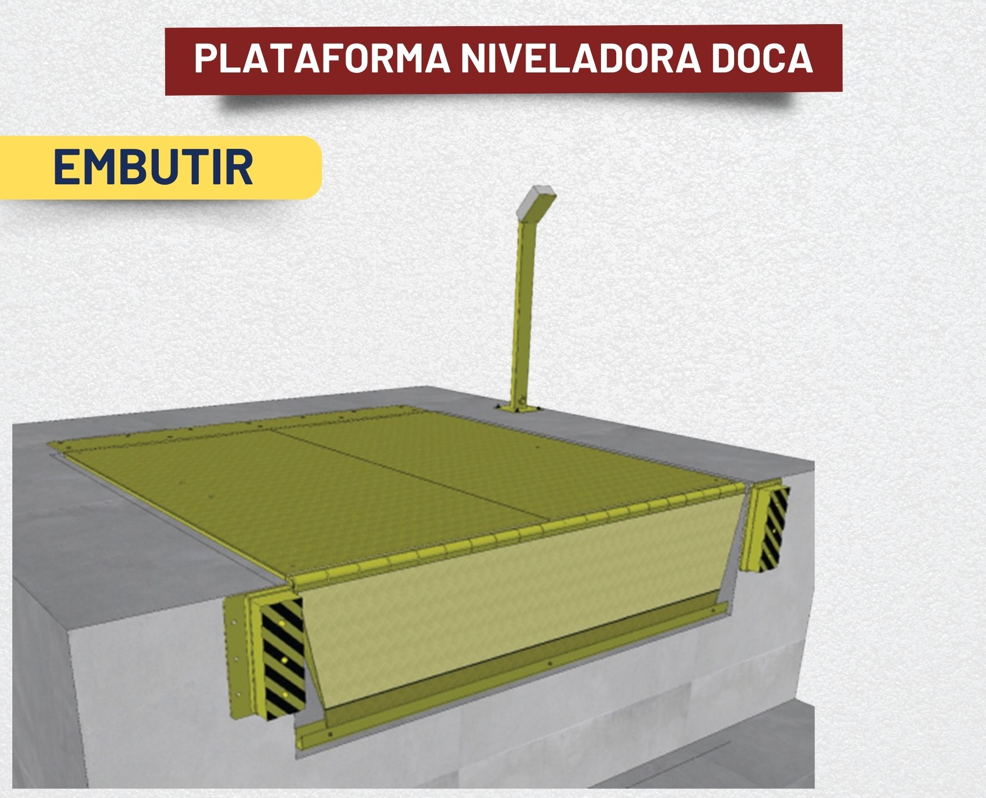 Plataformas niveladoras de docas embutidas no piso para aplicação em fosso pré-construído. Otimizam o espaço nas docas permitindo com que a área seja utilizada quando a mesma estiver na posição de descanso (fechada).